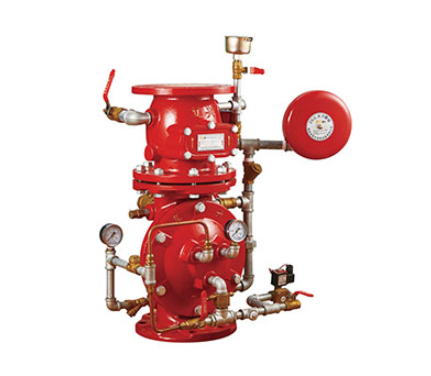 ZSFY型预作用装置是将火灾自动探测报警技术和自动喷水灭火系统结合起来,对保护对象起双重保 护作用。在未发生火灾时该系统管路内充满有压气体,故系统具有干式系统的特点,能满足严寒条 件下自动喷水灭火的需要。火灾探测器和消防控制中心联动打开雨淋阀,转为湿式系统,兼具干式 系统和湿式系统的优点。该装置由:报警阀组、控制盘、气压维持装置、空气供给装置(空压机)、 管路附件等。适用于寒冷冰冻和平时忌水及杜绝误喷的场所,如:计算机房、发动机房、资料室、 史料档案馆、高架仓库等场所。