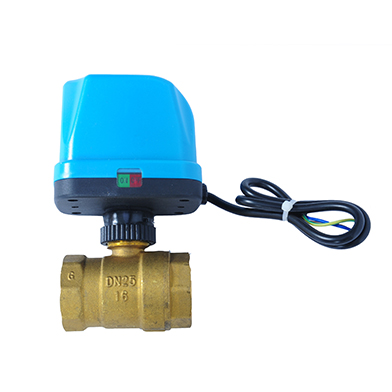 黄铜电动球阀适用于风机盘管水流的通断控制,当需要工作时,由温控器提供一个开阀信号,使电动二通阀接通交流电源而动作,开启阀门,冷水或热水进入风机盘管,为房间提供冷气或暖气;当室温达到温控器设定值时,温控器令电动阀断电,复位弹簧使阀门关闭,从而截断进入风机盘管的水流。通过阀门关闭和开启,使室温始终保持在温控器设定的温度范围内。本系列电动阀能与多种温控器匹配,实现空调系统的节能运行。