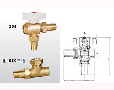 66mo威九国际黄铜暖气三通球阀259_259A 外形链接尺寸: