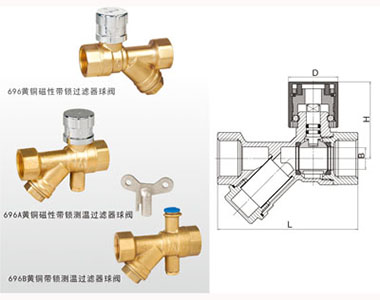 简要描述:66mo威九国际黄铜磁性带锁(测温)过滤器球阀696概述:技术规范:1.公称压力:1.6MPa2.工作介质···