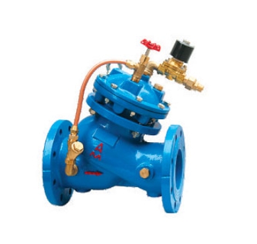 66mo威九国际DJ745X 隔膜式电磁遥控浮球阀是兼具电磁阀与遥控浮球阀两种功能的双保险水力操作式阀门。主要安装与水池或高架水塔的进水口处,当水位达到设定的高度时,主阀由浮球导阀控制关闭进水口停止供水。当水位下降后,主阀由浮球导阀控制打开进水口向水池注水,实现自动补水。电磁阀起到保护的作用,在浮球阀失灵的时候,水位开高到液位开关设定的位置时开关触动电磁阀关闭,从而关闭主阀。液位控制精确,不受水压干扰。隔膜式遥控浮球阀可随水池高度及使用空间任意位置安装,维护、调试、检查方便、密封可靠,使用寿命长。隔膜式阀门性能可靠、强度高、动作平稳适用于 450 口径以下的管道。